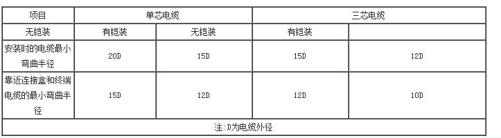 安裝時(shí)電纜最小彎曲半徑見表4—5。